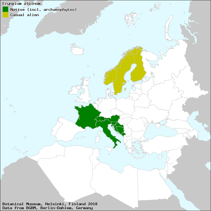 Auch in montanen bis subalpinen Hochstaudenfluren frischer, nahrhafter Standorte kommt Eryngium alpinum vor.