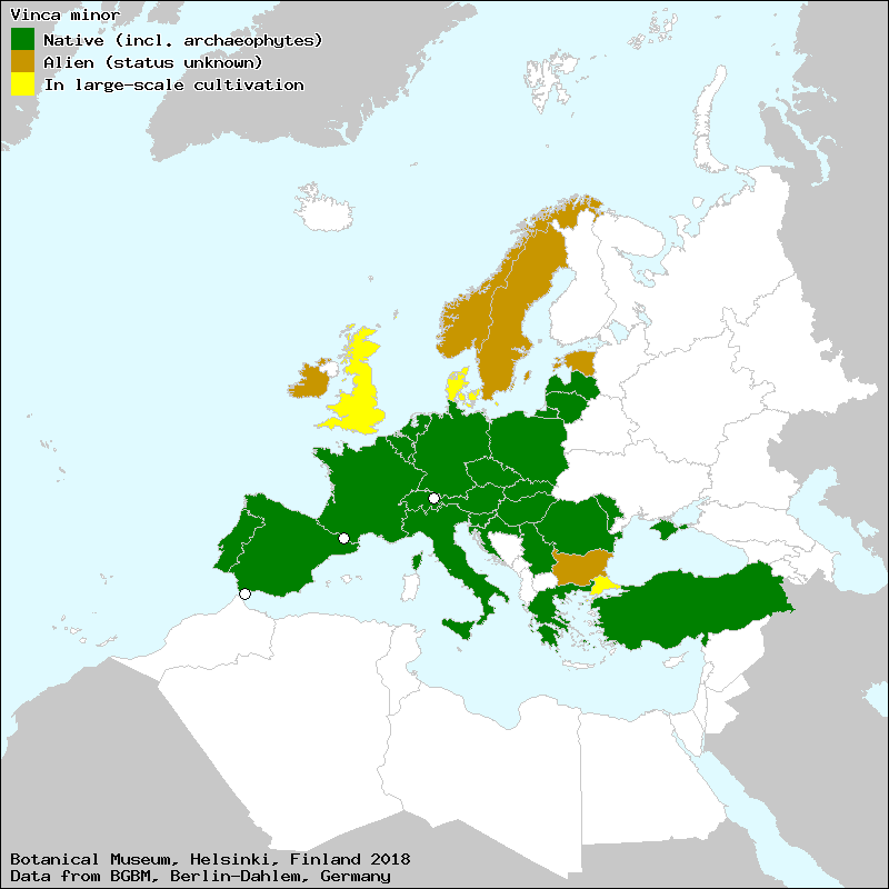 Das Kleine Immergrün stammt ursprünglich aus Süd-Europa, dem nördlichen Mittelmeerraum, Kleinasien und dem Vorderen Orient.