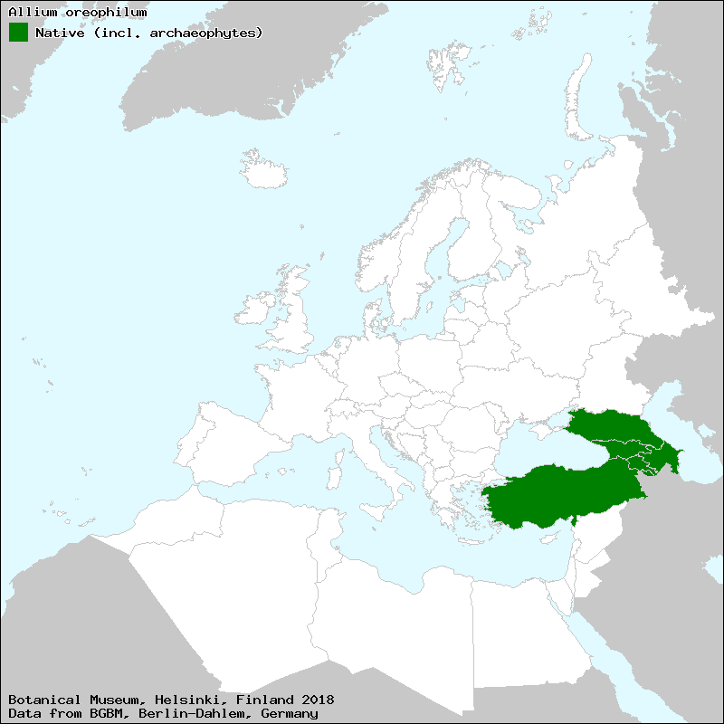 Allium oreophilum kommt von Klein-Asien über den Kaukasus bis Zentral-China oberhalb von 2.500 m in Berghängen und Bergwiesen vor.