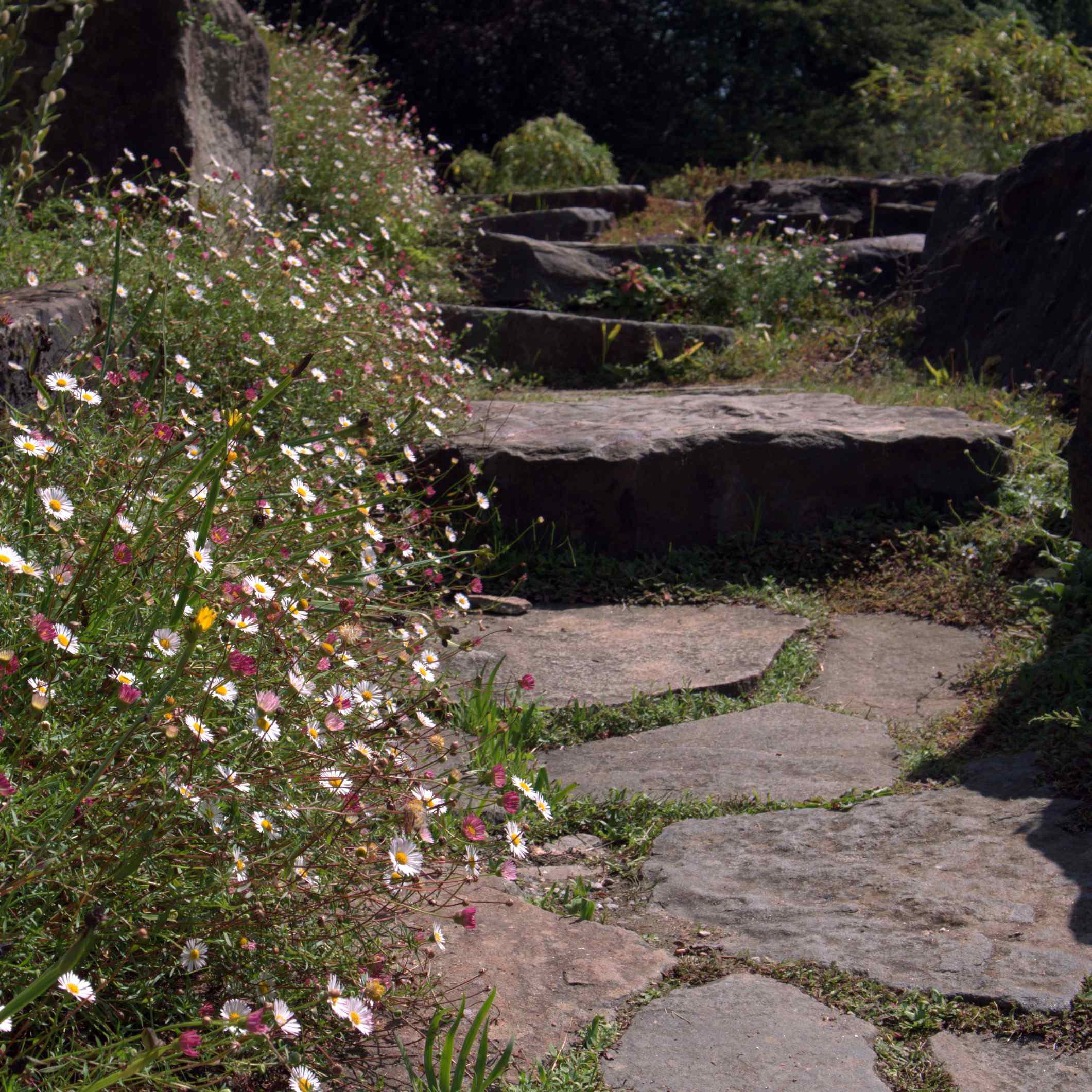 Natursteintreppen und Alpinarien sind stimmige Einsatzgebiete.