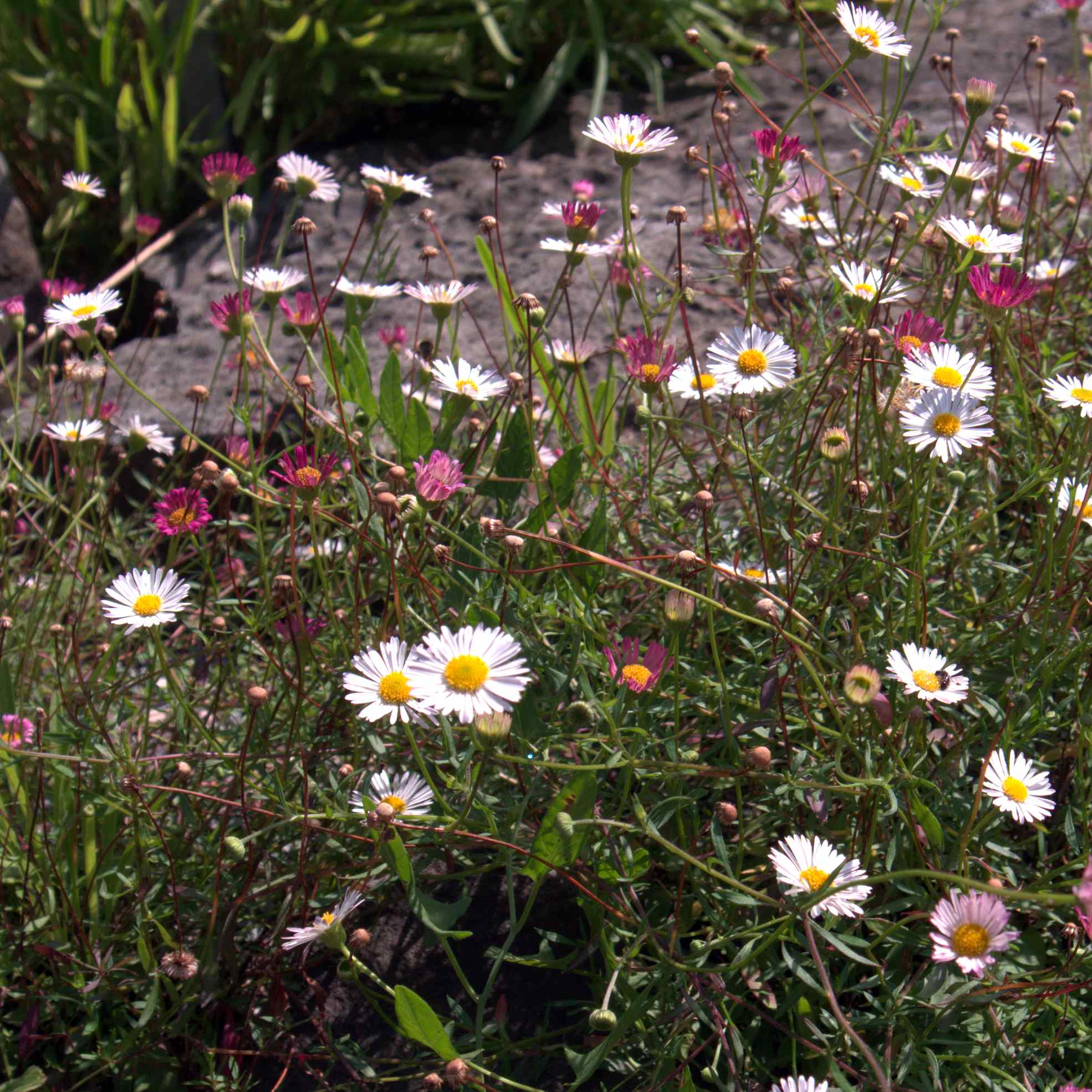 In betont wintermilden Regionen kann man Erigeron karvinskianus auch in Kies- und Schotterbeeten einsetzen. Sie ist hier mehrjährig und entwickelt sich mitunter üppig.