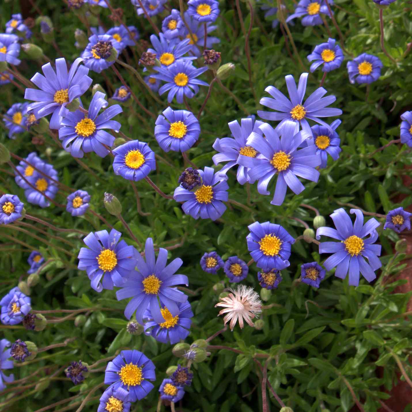 Felicia amelloides ist eine beliebte, traditionelle Kübelpflannze für Balkon und Terrasse.