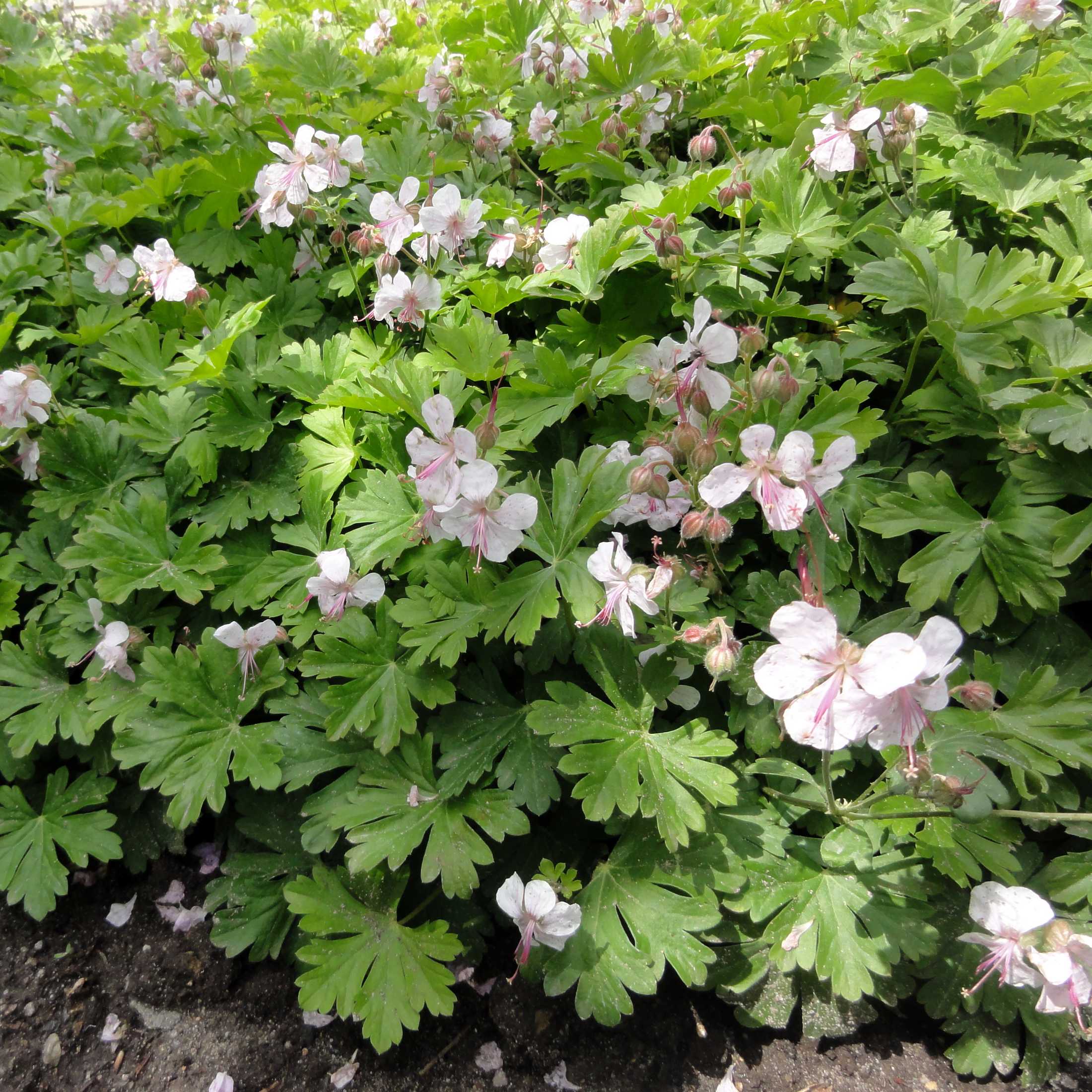 Die fast weiß wirkende 'Biokovo' wurde von verbesserten Sorten in die zweite Liga der Cambridge-Storchschnäbel verdrängt.