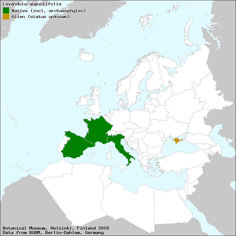 Der Echte Lavendel stammt ursprünglich aus der westlichen Mittelmeerregion, wo die Art auf sonnig-warmen, durchlässigen und basenreichen Hängen gedeiht.