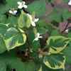 Flore Pleno: grünes Laub der Wildform, aber doppelte Anzahl an weißen Hochblättern
