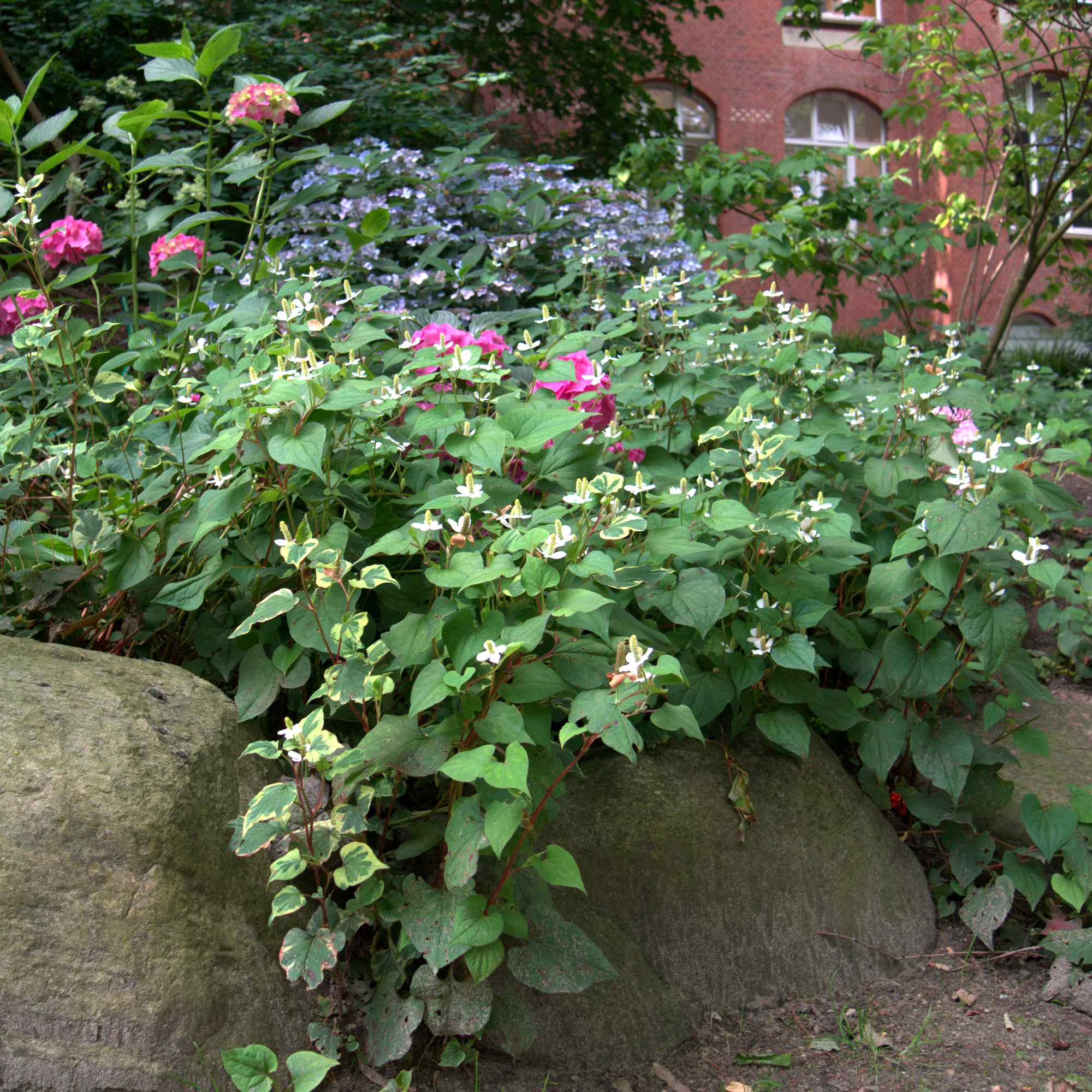 Houttuynia cordata braucht in winterrauhen Regionen mit regelmäßig auftretenden Barfrösten etwas geschützte Standorte oder eine leichte Laubdecke.
