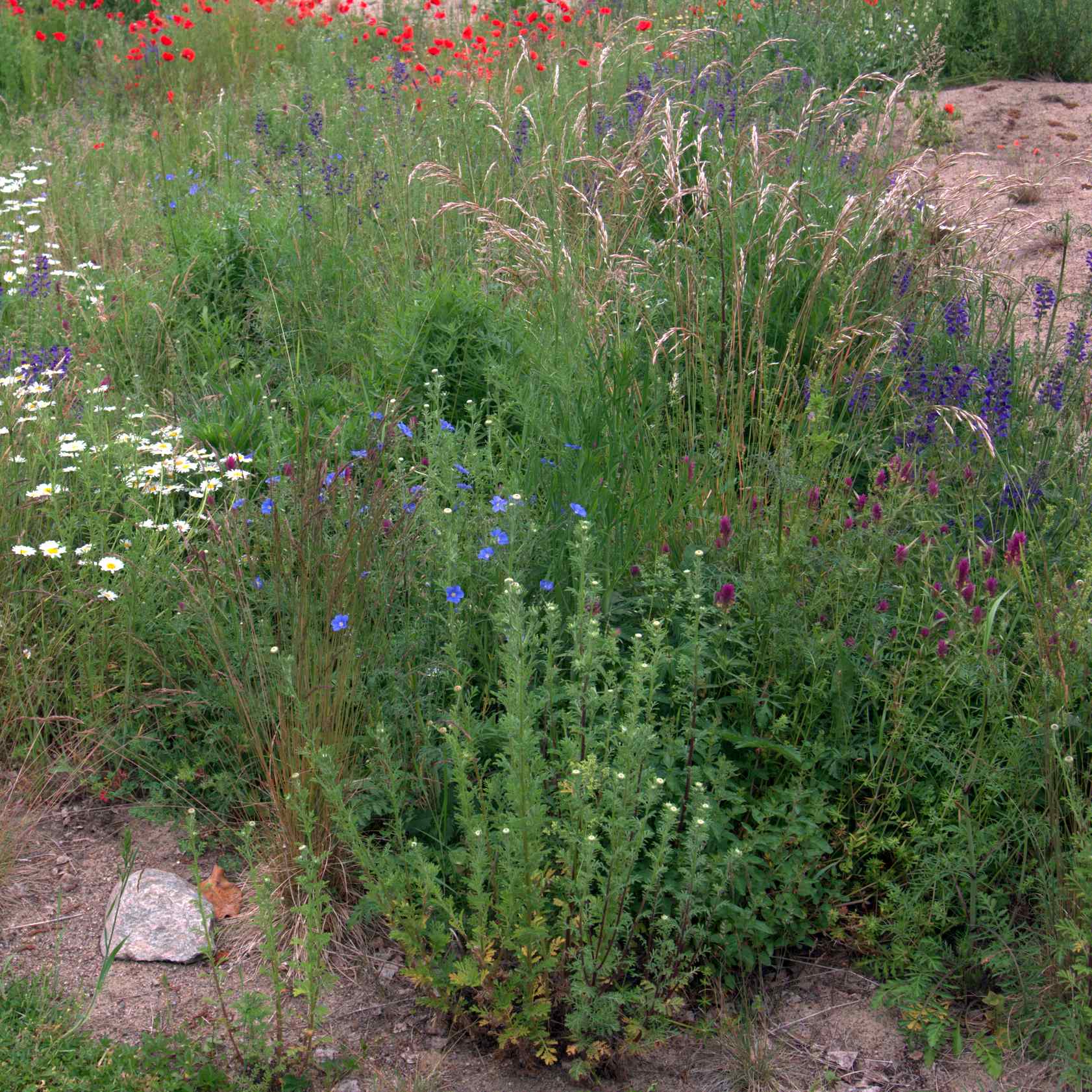 In einem naturidentischer Trockenrasen zusammen mit Wiesen-Salbei, Acker-Wachtelweizen und Österreichischem Lein.