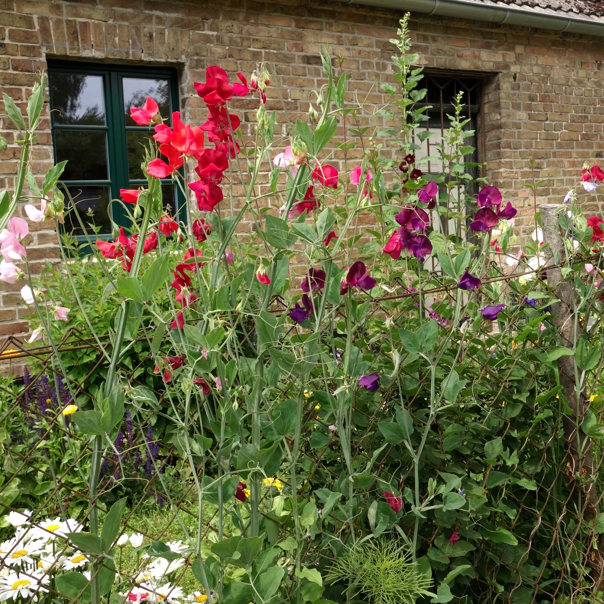 Zaun-Wicken gehören in einen gut gepflegten, traditionellen Landhausgarten einfach dazu. Sie wecken nostalgisch-verklärende Erinnerungen an die "gute alte Zeit". Am Zaun der Landhauskarte kann man sie auch gut als bunte Mischung verwenden.
