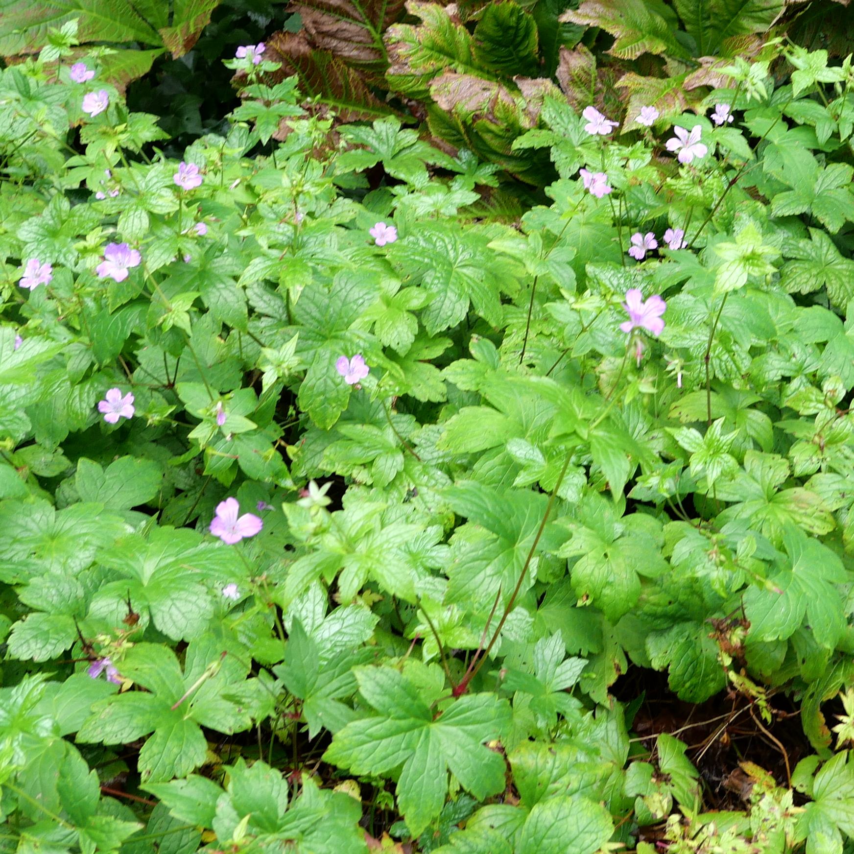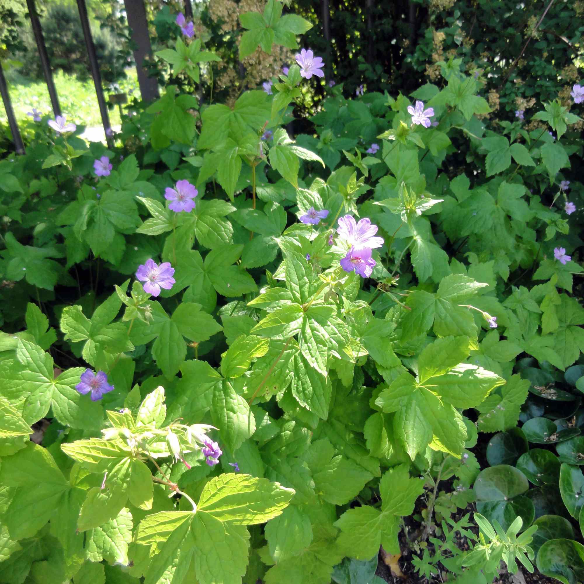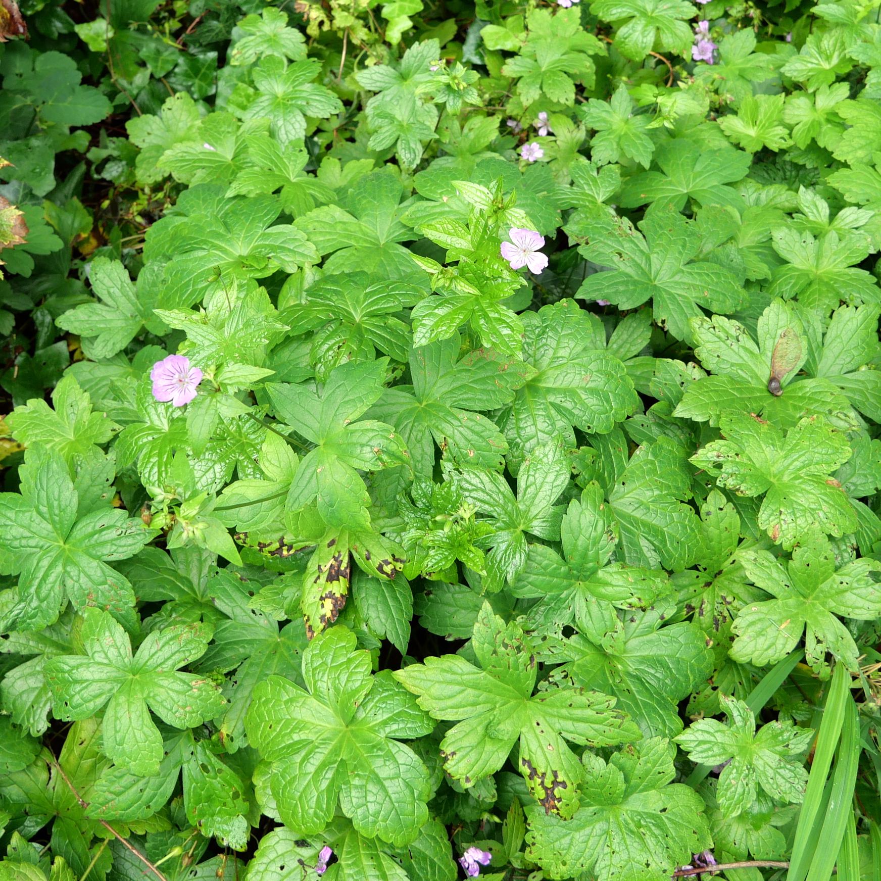Unter günstigen, d.h. mehr oder weniger frischen Bodenbedingungen kann der Knoten-Storchschnabel flächige Bestände unter Gehölzen entwickeln.