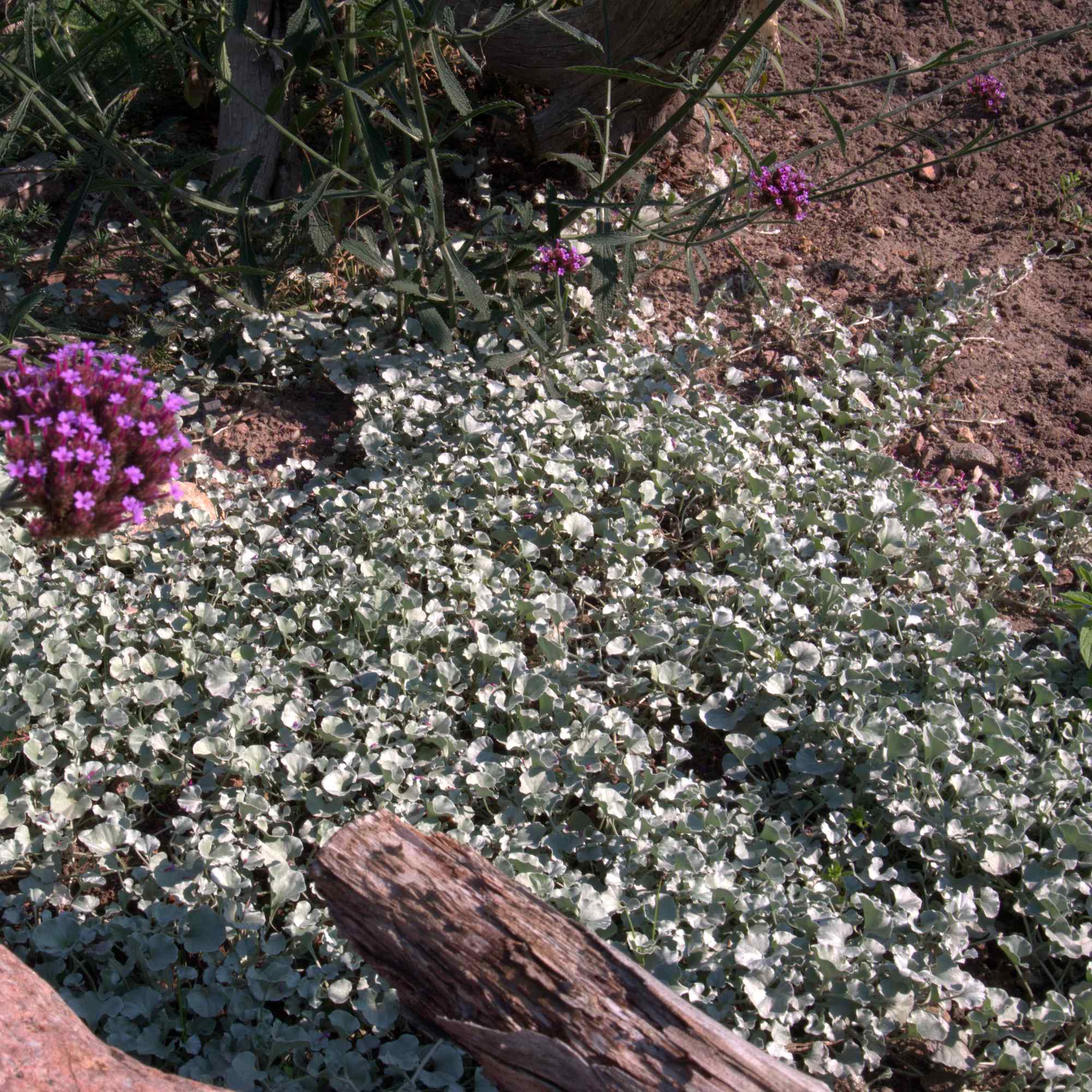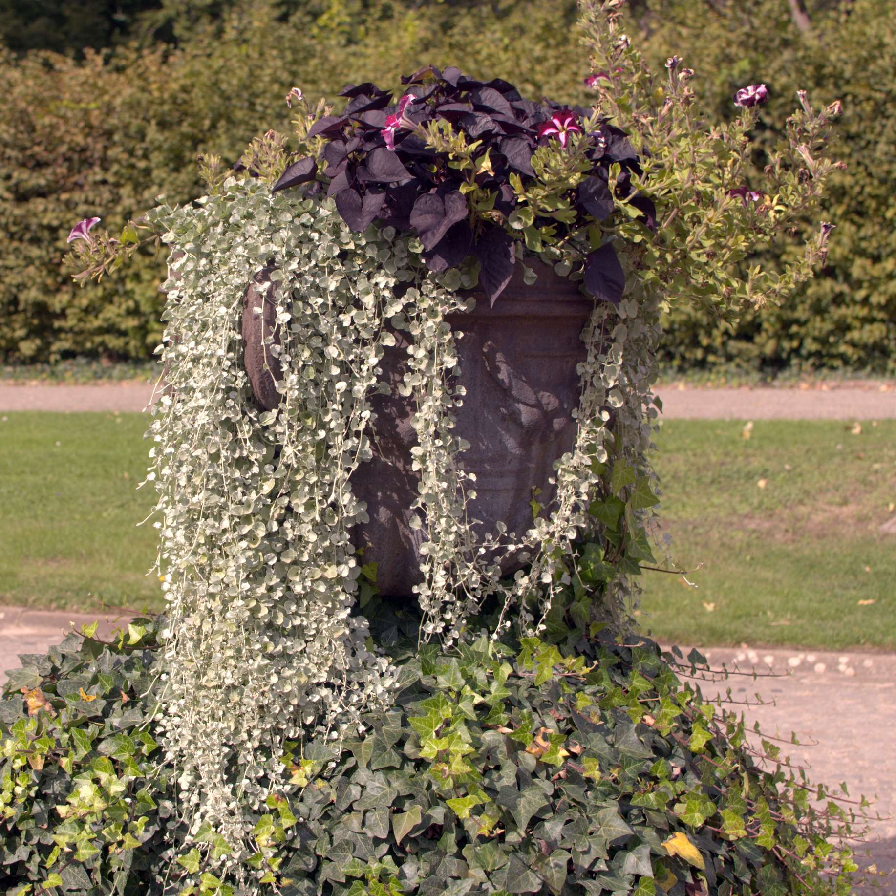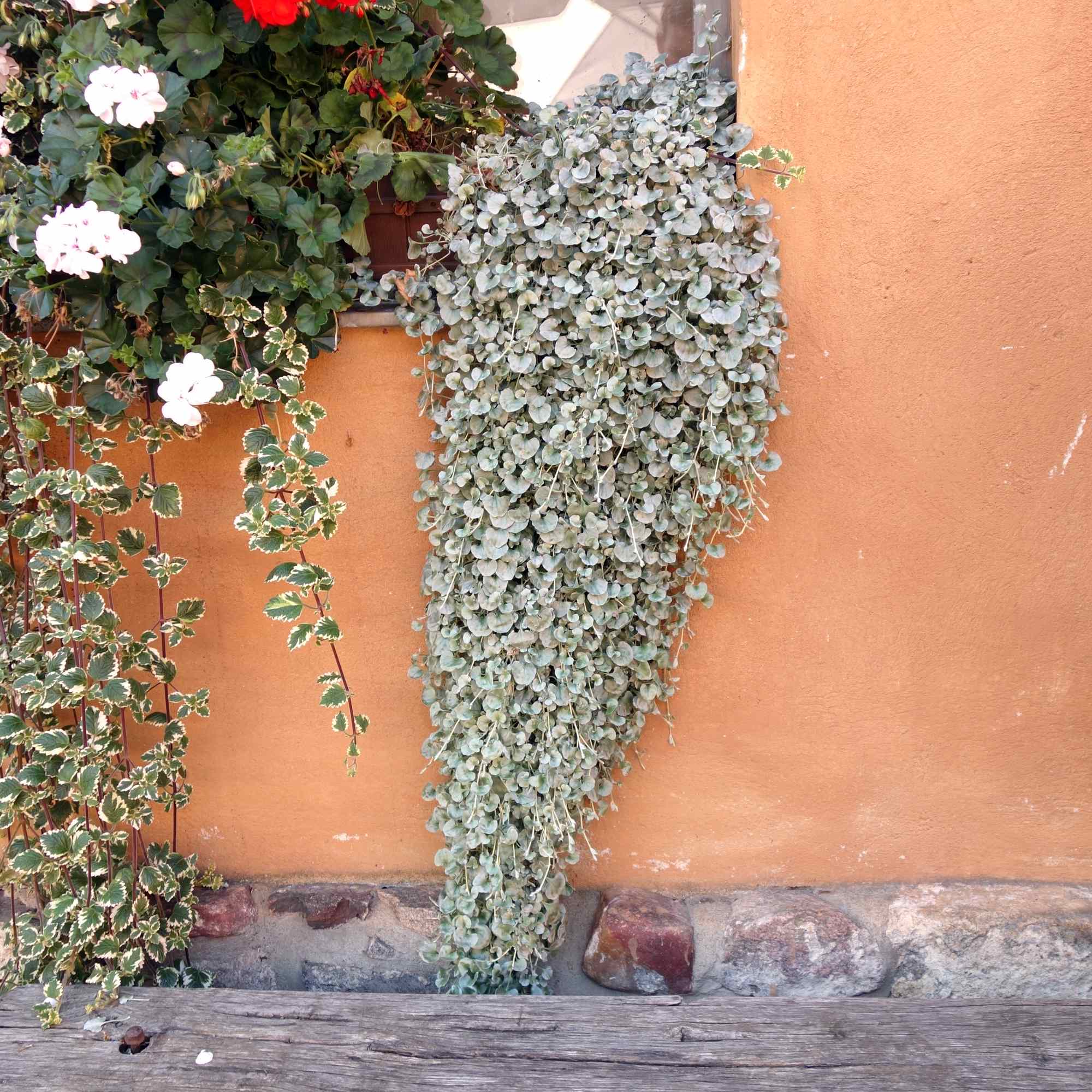 Dichondra argentea wie man es kennt als Hängepflanze im Balkonkasten.