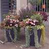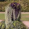 Üppiges Kübelarrangement mit Silberregen und Pfennigkraut 'Aurea' als kongenila hängende Elemente.