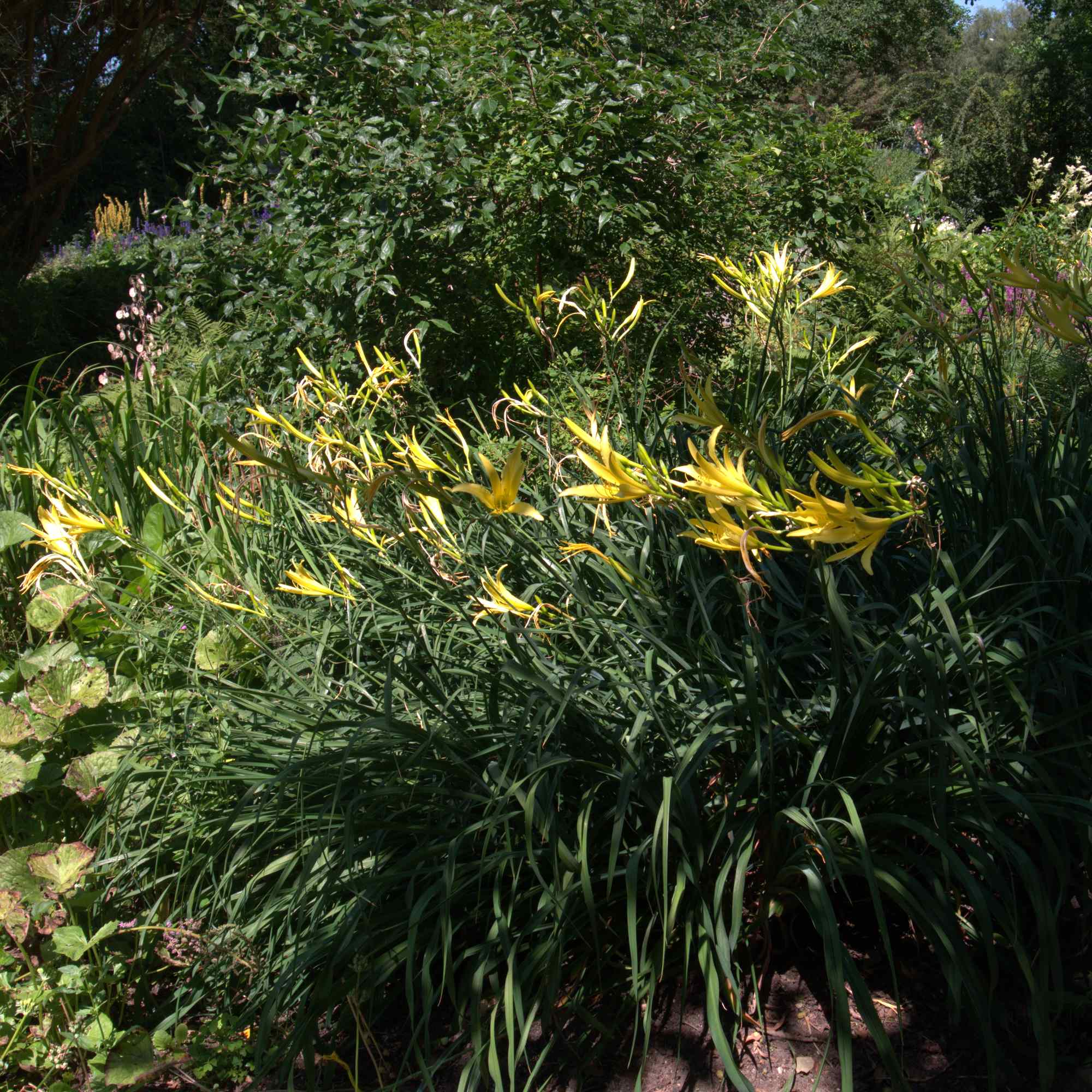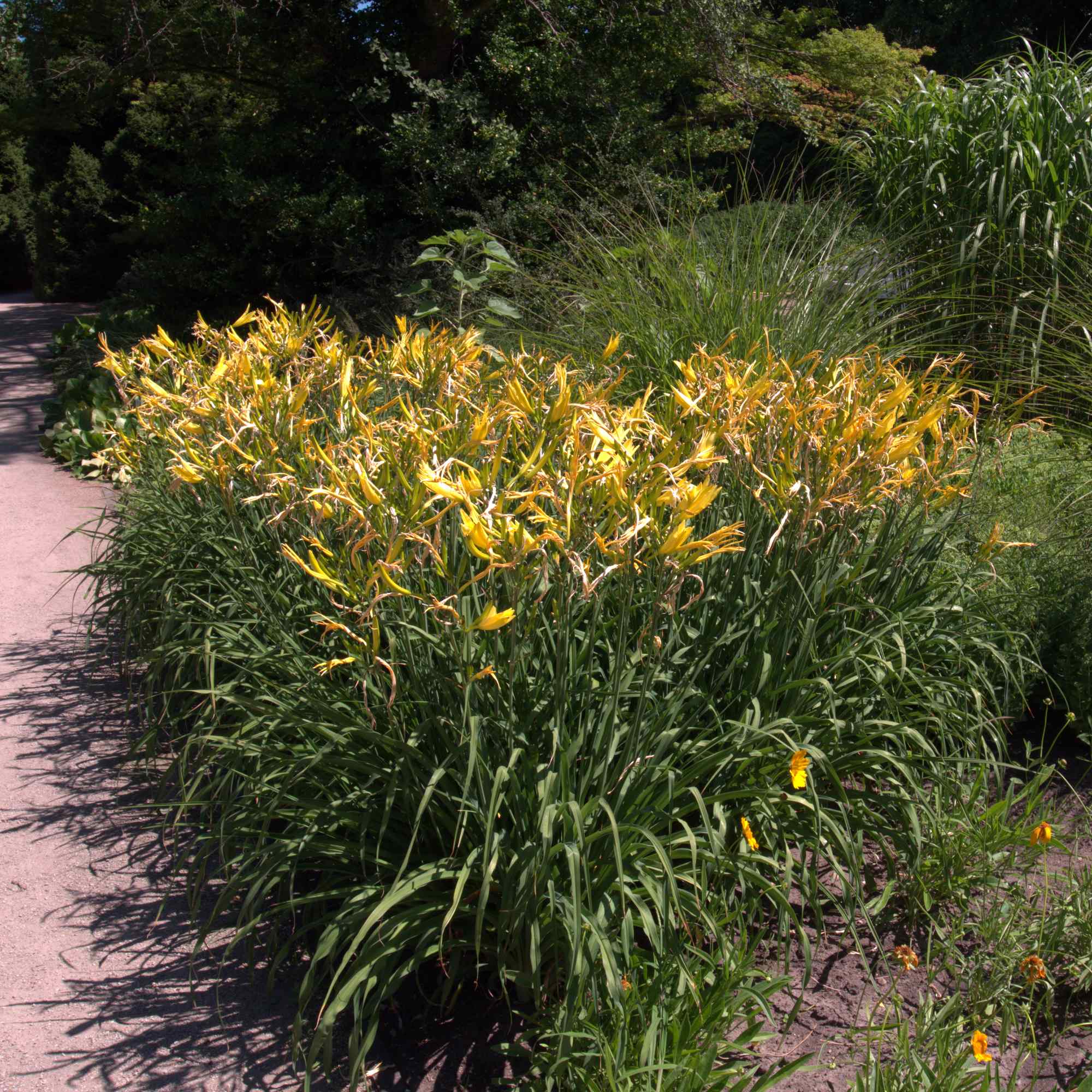 Hemerocallis citrina als dominanter Block im Staudenbeet.