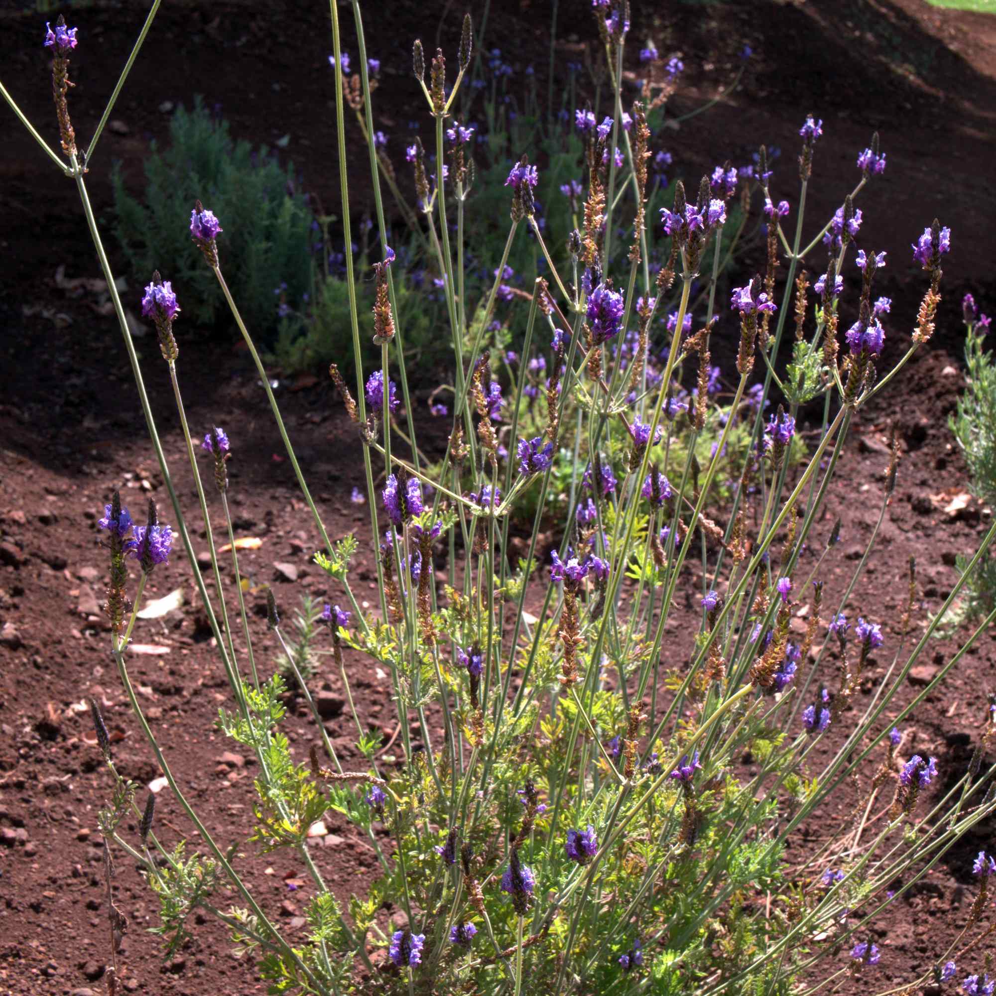 Optisch ist Lavandula pinnata zwar zweifellos eine eigenständige Erscheinung, allerdings erreicht der zarte Blütenflor nicht die Fernwirkung seiner Verwandten. Immerhin blüht er deutlich länger. In dieser Disziplin steht ihm allerdings der deutlich frosthärtere