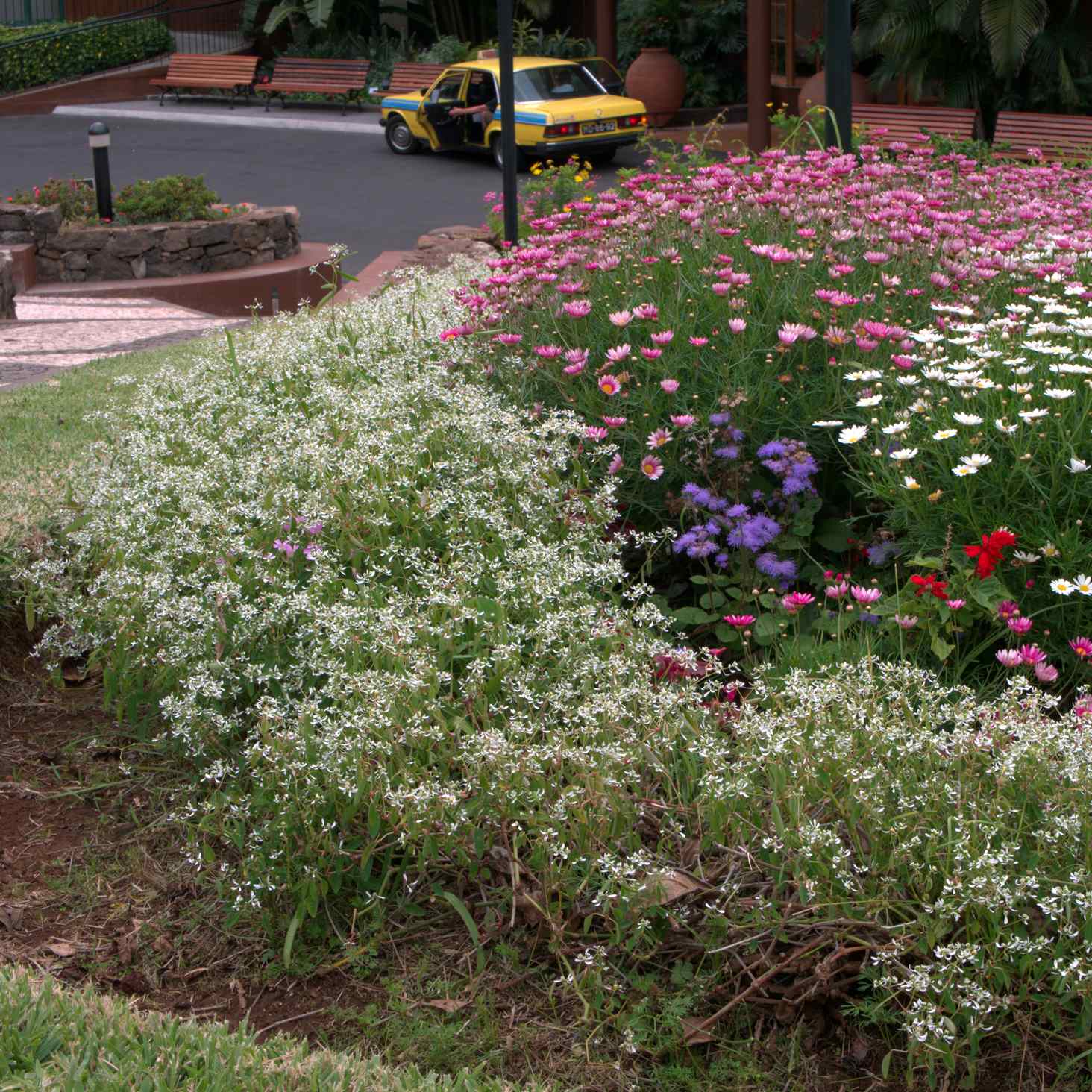 Euphorbia hypericifolia 'Diamond Frost'als Rabattenstaude auf Madeira.