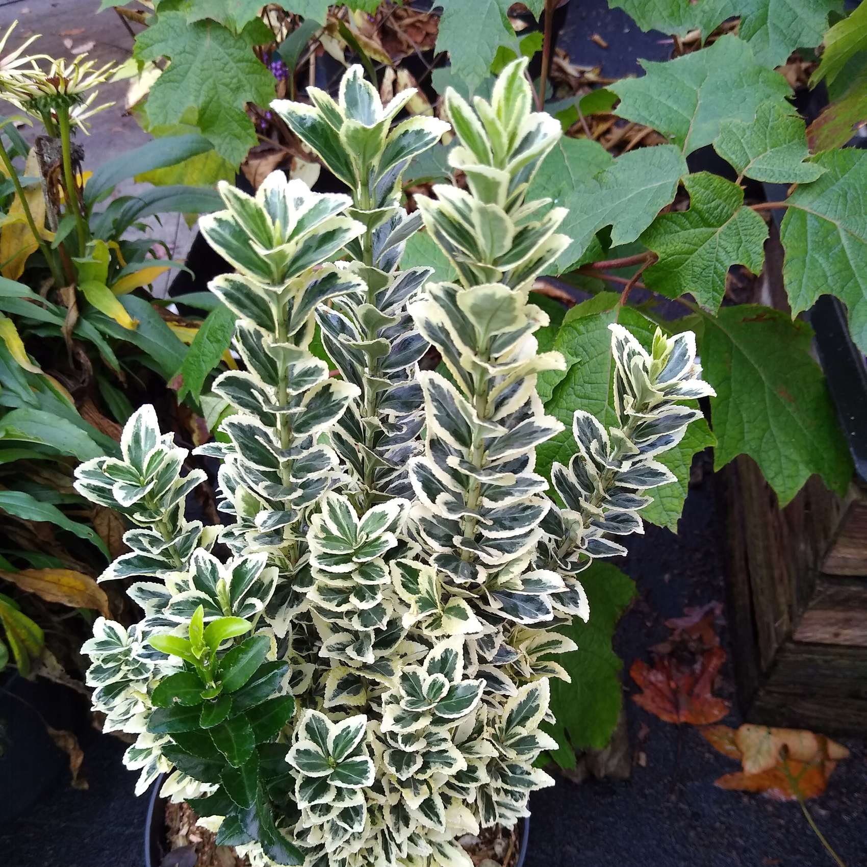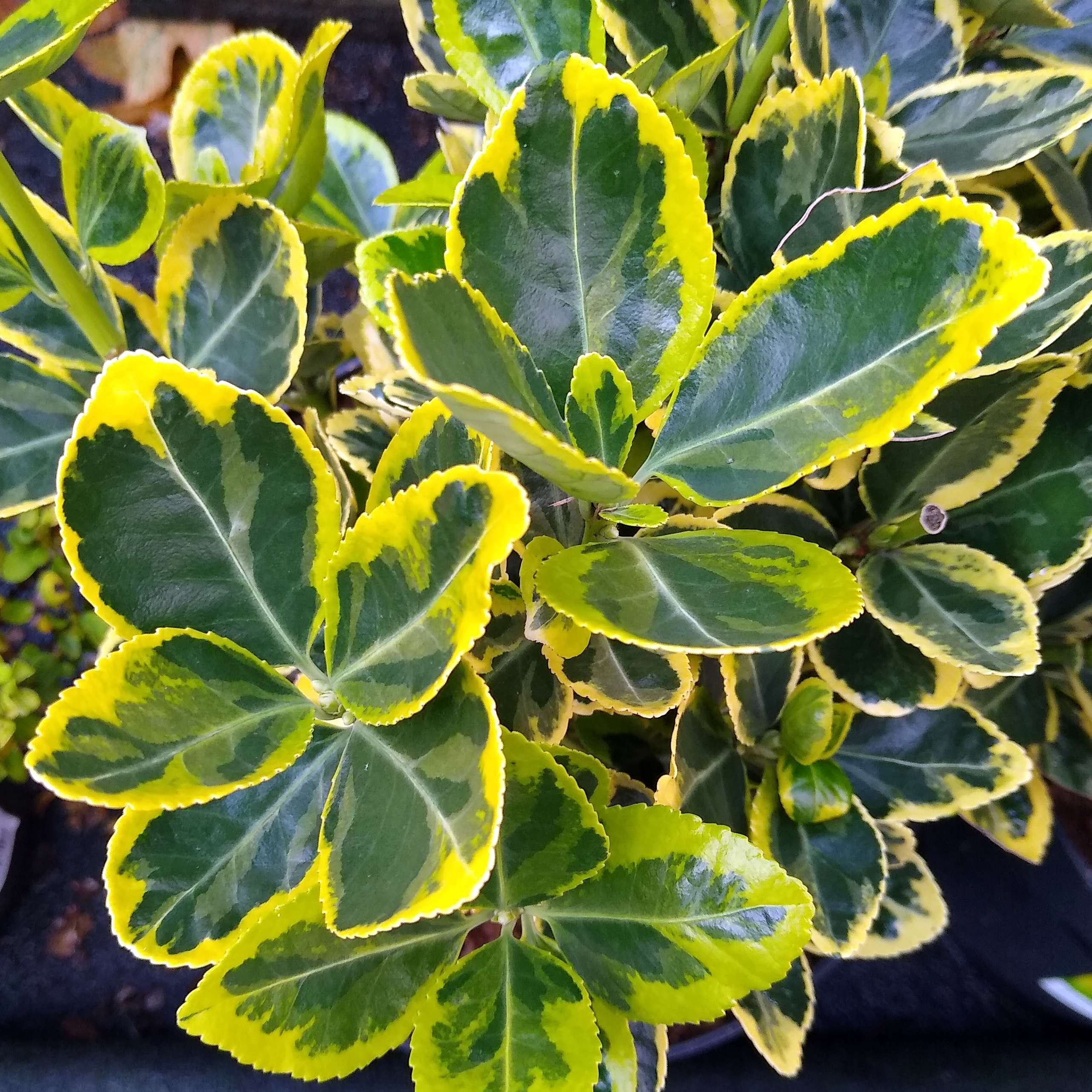 Winterhärtere Alternativen mit ähnlichem Erscheinungsbild und farblichem Spektrum wären Euonymus fortunei oder Ligustrum ovalifolium.