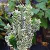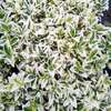 : dunkel-grünes Laub mit einfarbig creme-weißem Blattaustrieb, bis 80 cm hoch