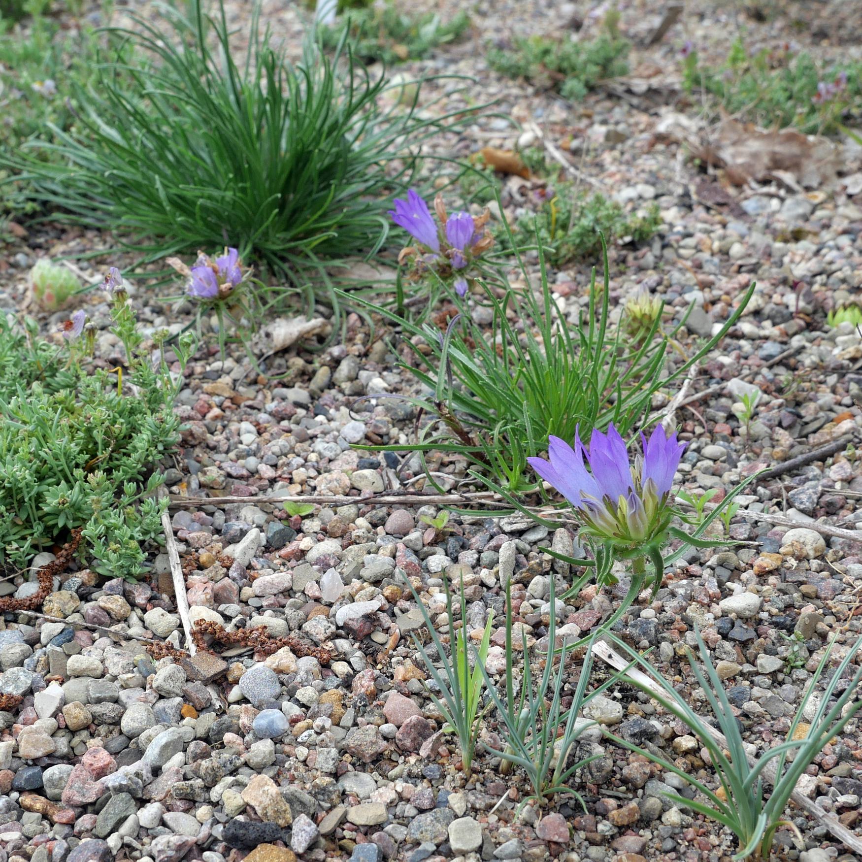 Edraianthus graminifolius ist zur Blütezeit eine sehr attraktive Erscheinung. Das reine, kräftige Himmelblau der Blüten ist ein Augenschmaus.